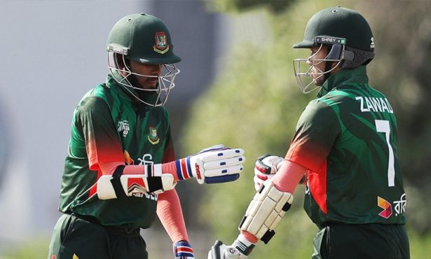 বুধবার (১৭ ডিসেম্বর) দুবাইয়ের আইসিসি একাডেমিতে আগে ব্যাটিং করতে নেমে ওপেনিং জুটিতে ৭৫ বলে ৮৪ রান তোলেন বাংলাদেশের দুই ওপেনার জাওয়াদ আবরার আর রিফাত বেগ। মাত্র ১ রানের জন্য ফিফটি বঞ্চিত হয়েছেন আবরার। ফিরেছেন ৩৬ বলে ৪টি করে চার-ছয়ে ৪৯ রান করে।