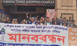 গুলশানে সম্মিলিত ইসলামী ব্যাংকের গ্রাহকদের বিক্ষোভ