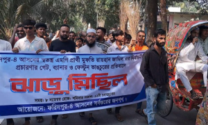 ডোমারে ওসির অপসারণ দাবিতে ঝাড়ু মিছিল