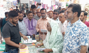 সিংড়ায় বিএনপি নেতা আনুর ৩১ দফার লিফলেট বিতরণ